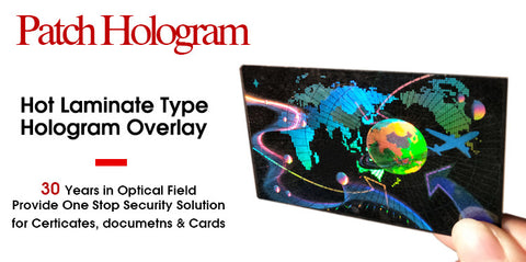 The holographic laminate patch is a kind of patch-style holographic ID overlay that leaves a small non-laminated border around the edge of the card. It can be overlaminate on cards by using a special PVC ID card hologram laminator to protect your cards and card data against falsification.